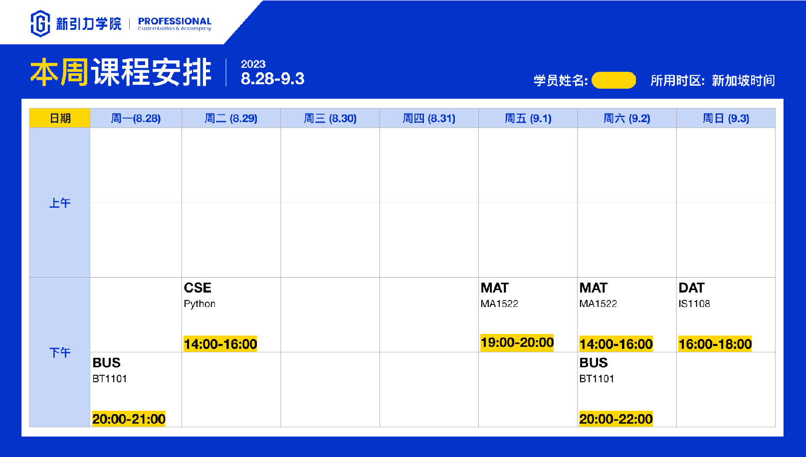 定制个人专属课表